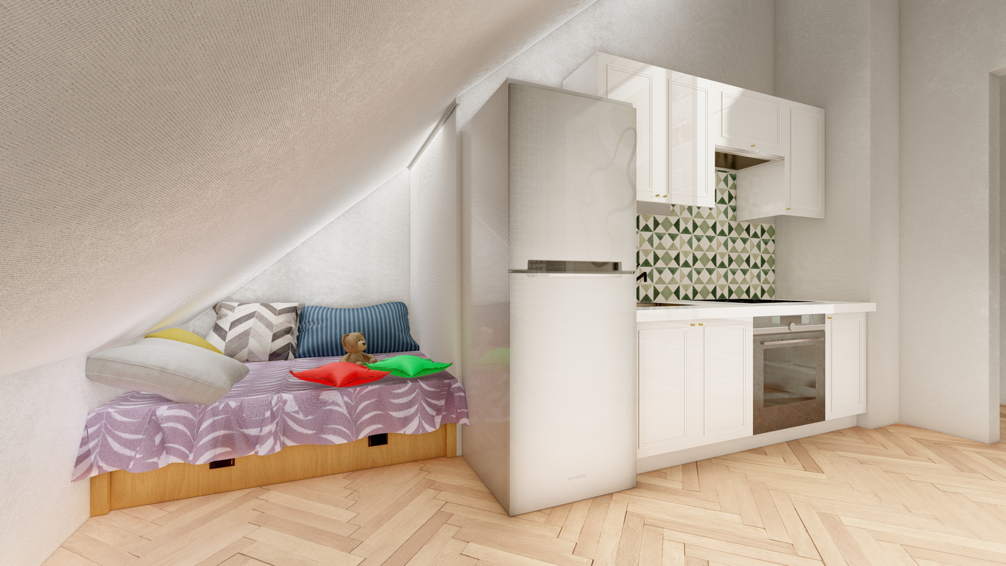 to apartament na drugim piętrze (poddaszu) utrzymany w leśnym boho klimacie. Jest 2 pokojowy z widokiem na jezioro i wieś Piechowice. Przeznaczony jest dla czterech osób dorosłych lub rodziny z dziećmi. W apartamencie znajduje się część dzienna w której znajduje się rozkładana sofa 2 osobowa z stolikiem kawowym połączona aneksem kuchennym (w pełni wyposażonym: lodówka, kuchenka dwupalnikowa, zmywarka, ekspres do kawy, czajnik, garnki, zastawa stołowa). W apartamencie znajduje się przepiękna klimatyczna łazienka z wygodnym prysznicem, w pełni wyposażona. Obiekt wyposażony jest w czajnik, deskę do prasowania oraz żelazko, expres do kawy , aneks kuchenny z pełnym wyposażeniem (lodówka, płyta indukcyjna, zmywarka, zlew)